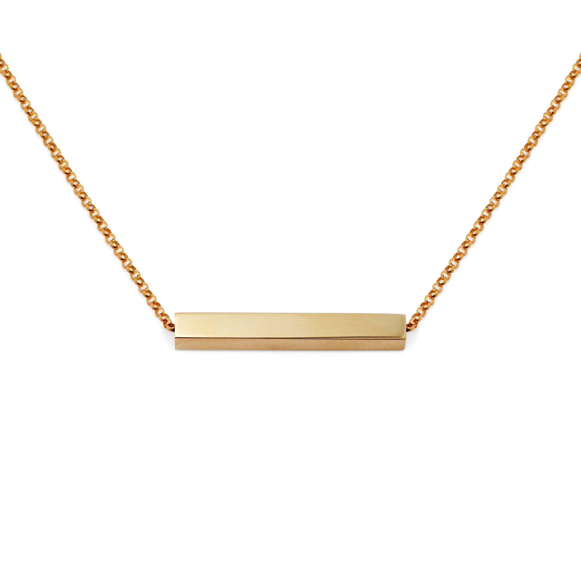 This linear, rectangular bar necklace is modern and easy to wear every day. Perfect alone or stacked with other necklaces. Elegant and minimal jewelry with a simple, geometric form.