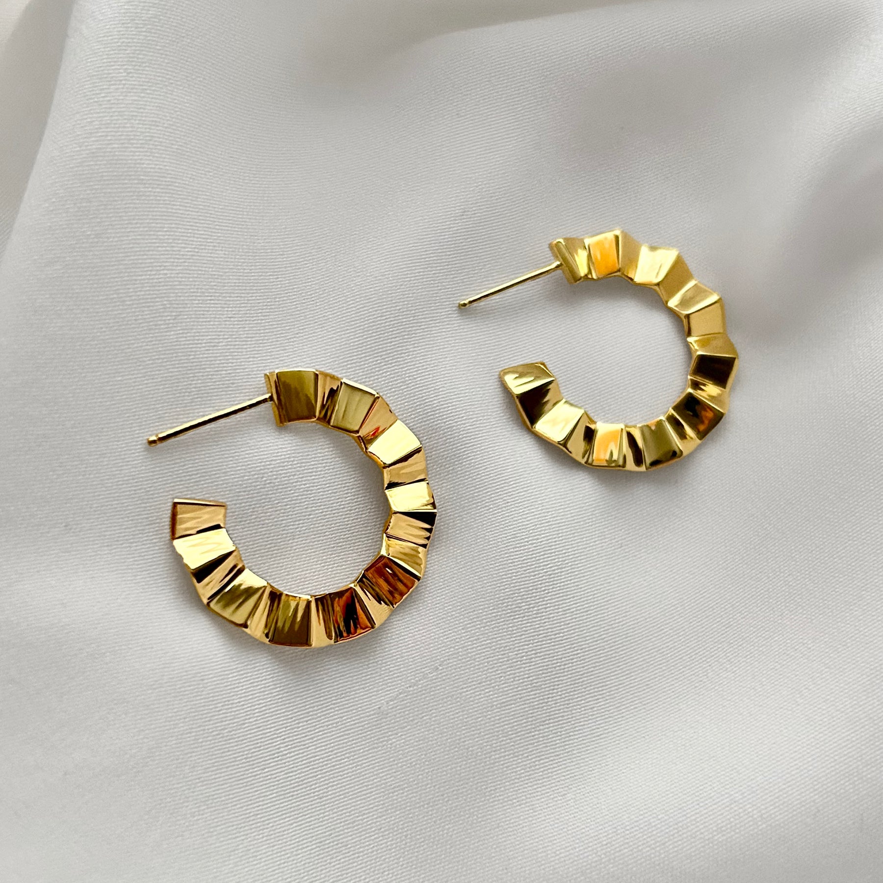Modern, faceted geometric hoop earrings.
