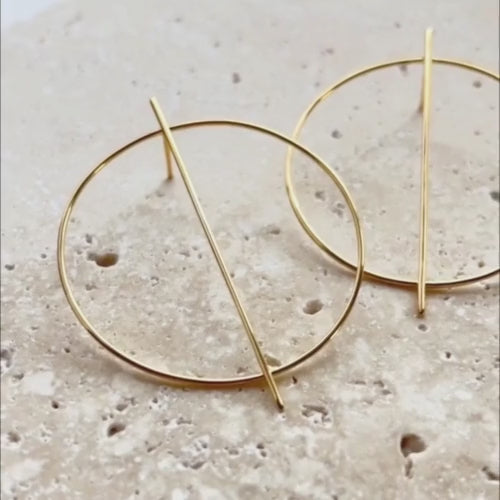 Modern, geometric circle earrings with a floating vertical line. A lightweight statement earring that is perfect for anyone who loves to wear minimal yet bold earrings.