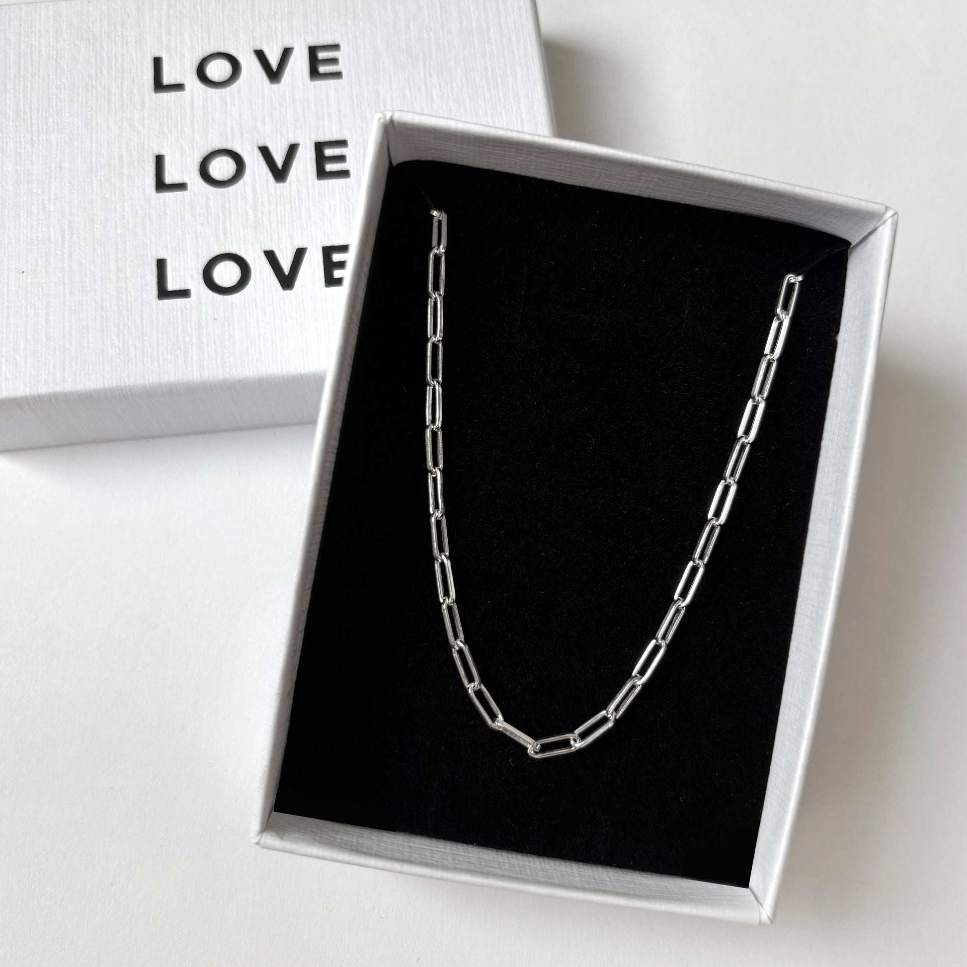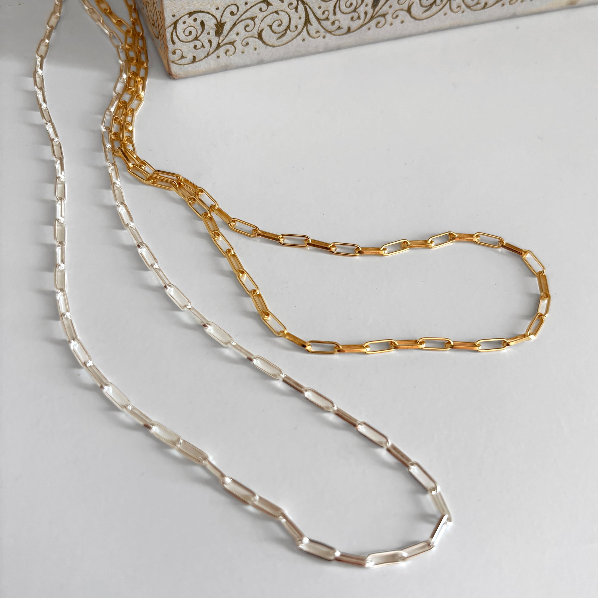 A gorgeous, minimal paperclip necklace chain comprised of long, rounded profile links. Modern yet timeless. This stackable chain is perfect for wearing alone or alongside your favorite necklaces.