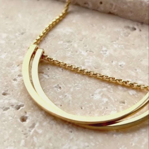Grinning from ear to ear: this smile necklace is perfect for you or someone you love. Two graceful arcing curve shapes boldly add depth and movement, but in a clean and subtle way, easy enough to wear everyday.