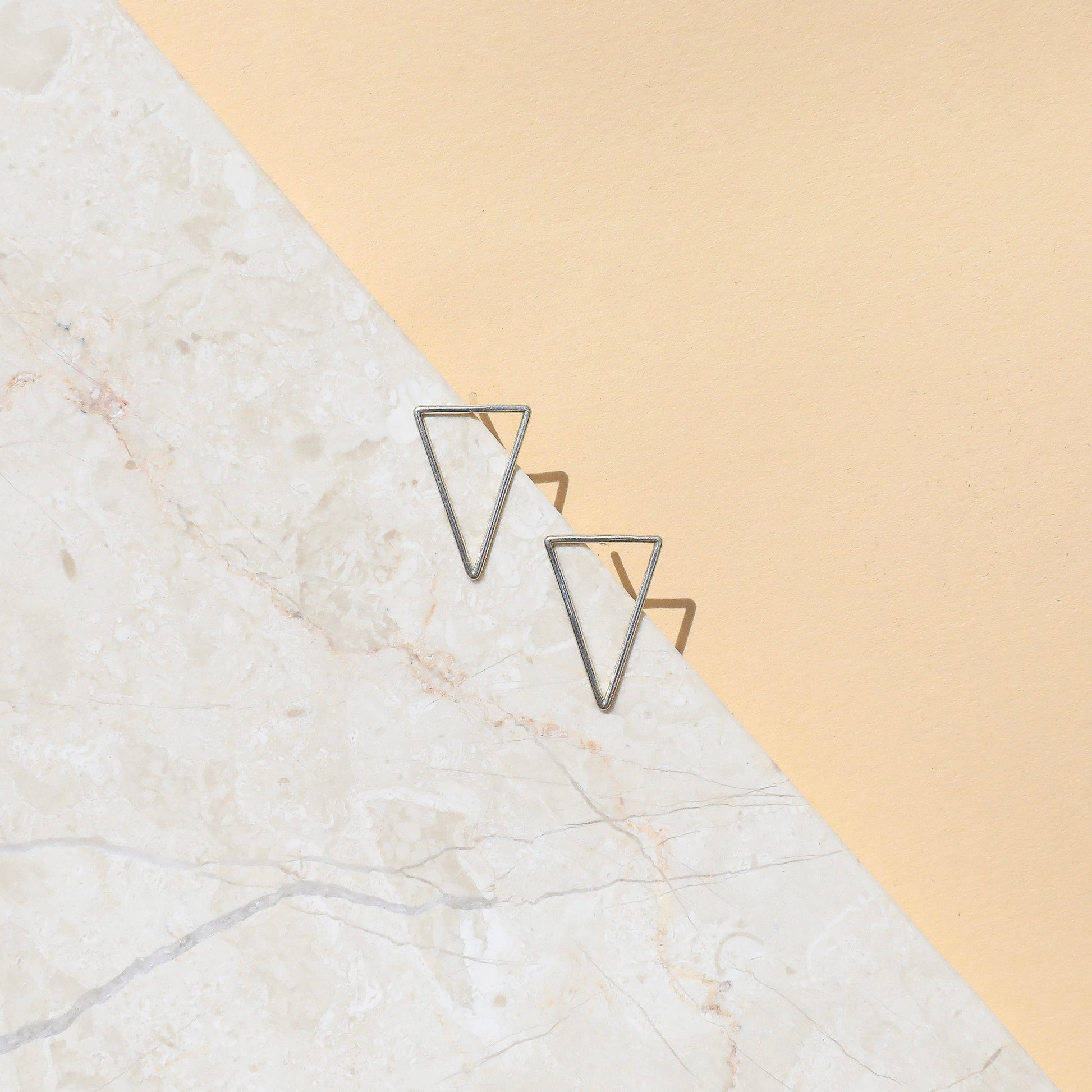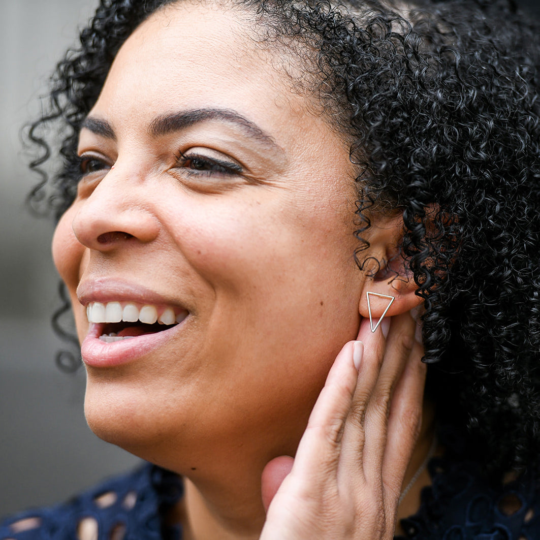 Triangles suggest strength, stability, and power. Modern and minimal triangular earrings, these inverted triangle-shapes are elegant, everyday geometric jewelry.
